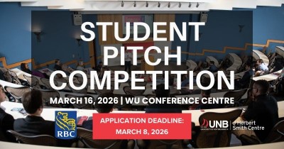 The J. Herbert Smith Centre at UNB Fredericton is seeking applicants for the RBC student pitching contest.